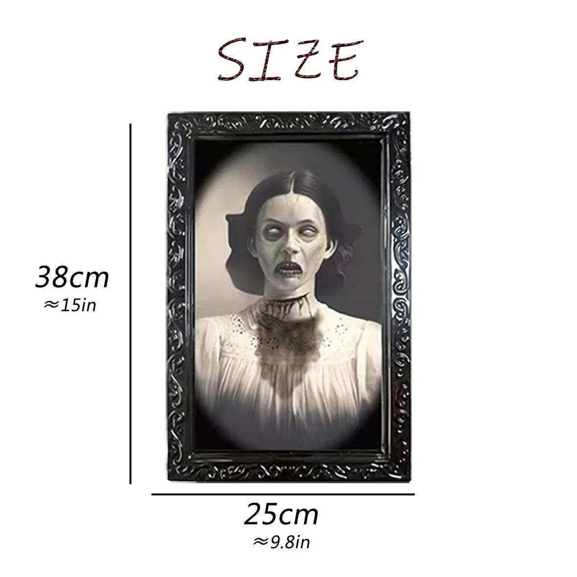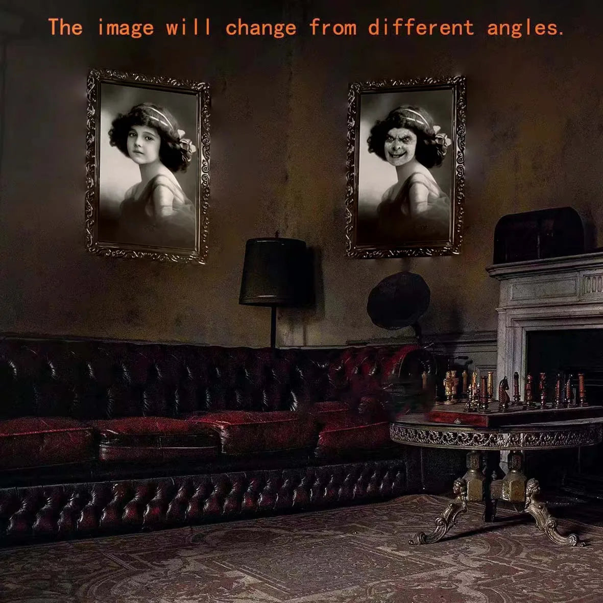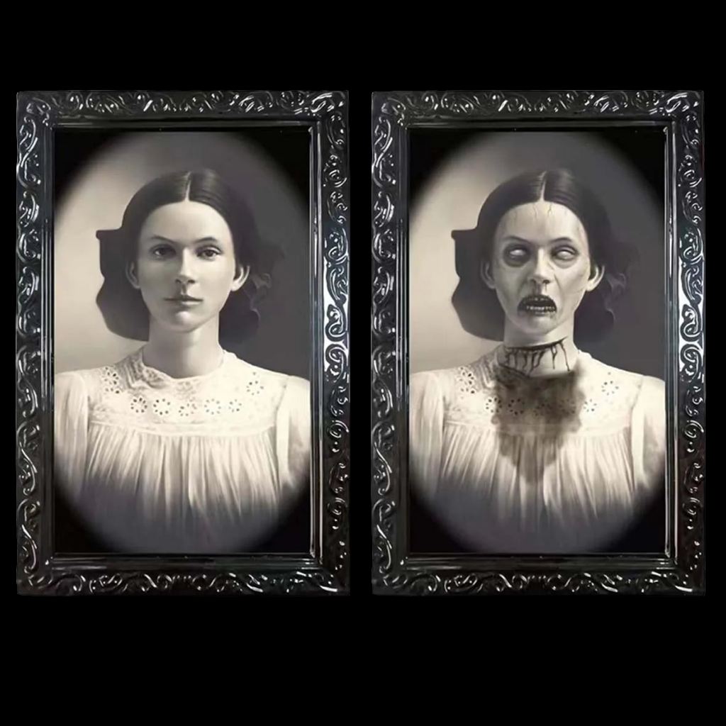 Transform your home into a haunted haven with our 3D Haunted Pictureframe! This eerie decoration features a changing face that morphs into a ghastly apparition, perfect for spooking your guests. It’s designed to withstand the chills and thrills of Halloween night. Hang it on your wall and watch as the 3D effect brings the portrait to life, creating a spine-tingling atmosphere. Ideal for Halloween parties or adding a touch of the macabre to your everyday decor. Dare to gaze into the eyes of the unknown and let the haunting begin!