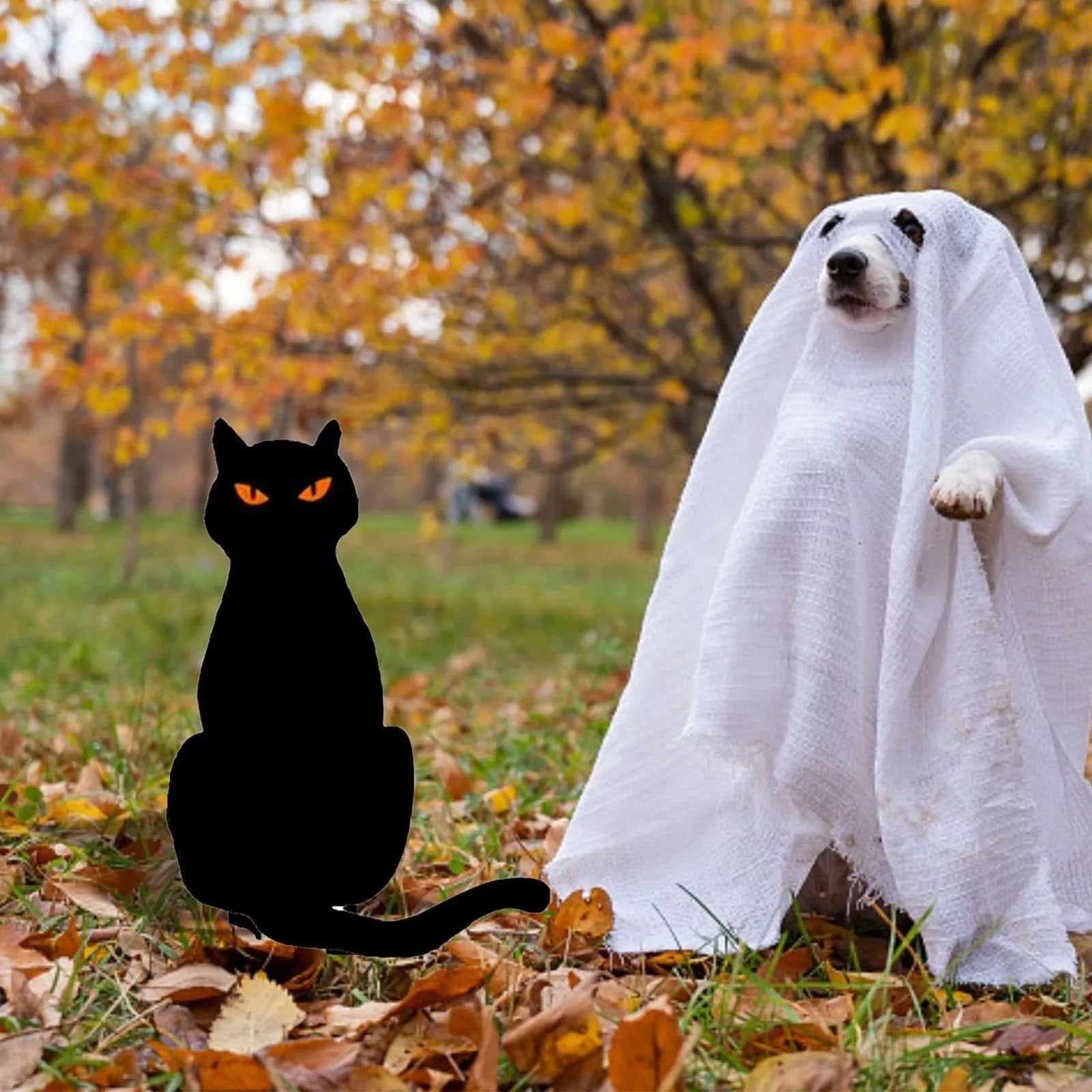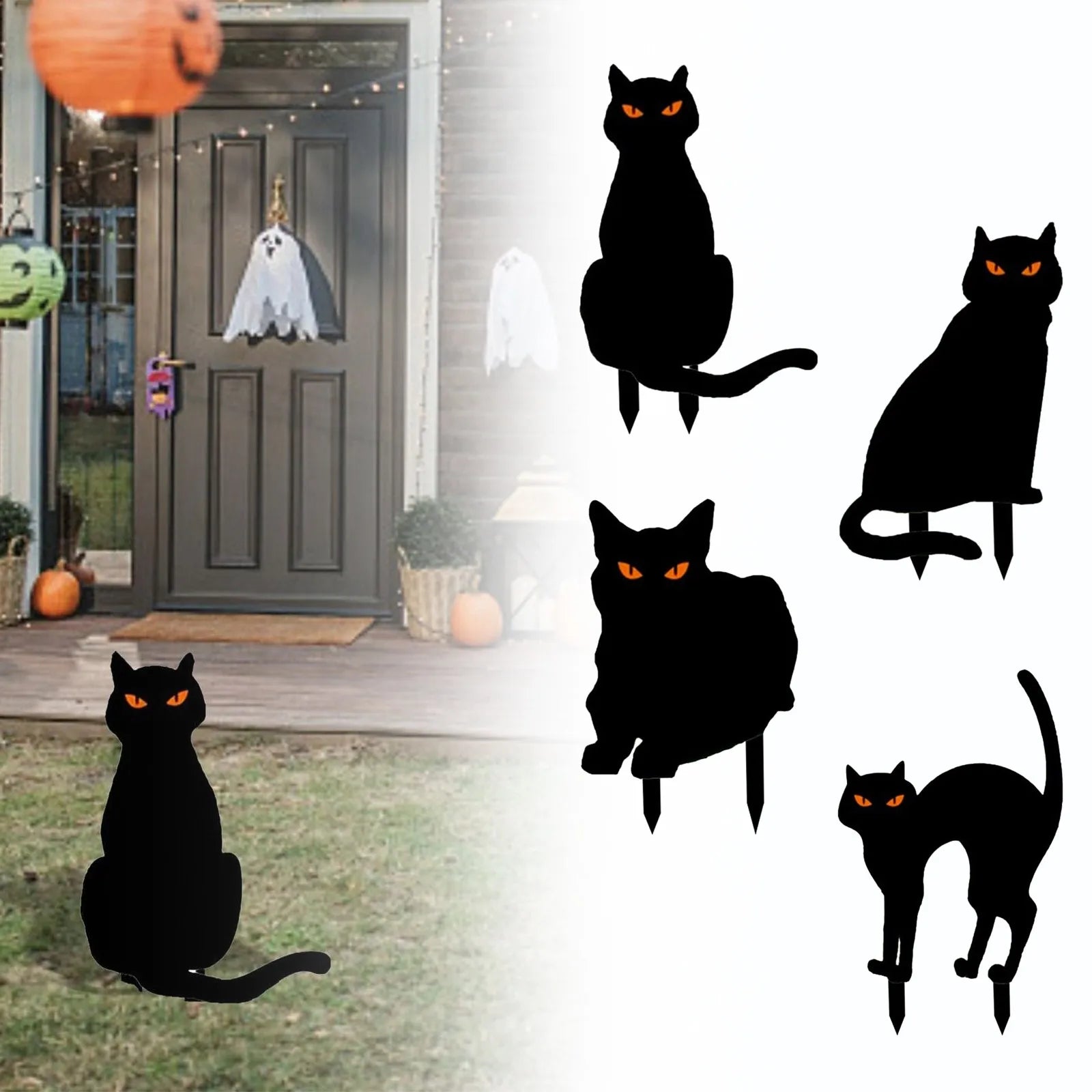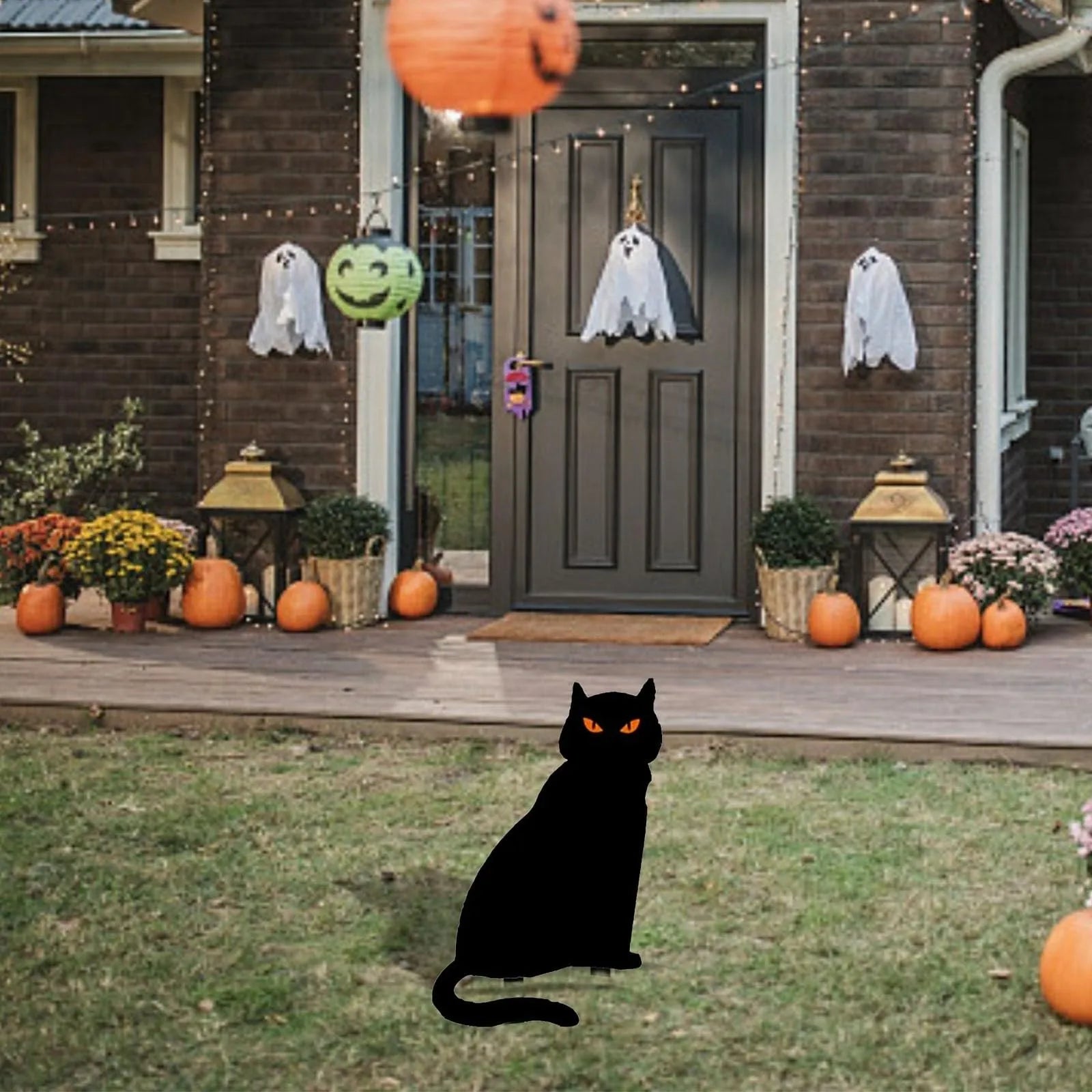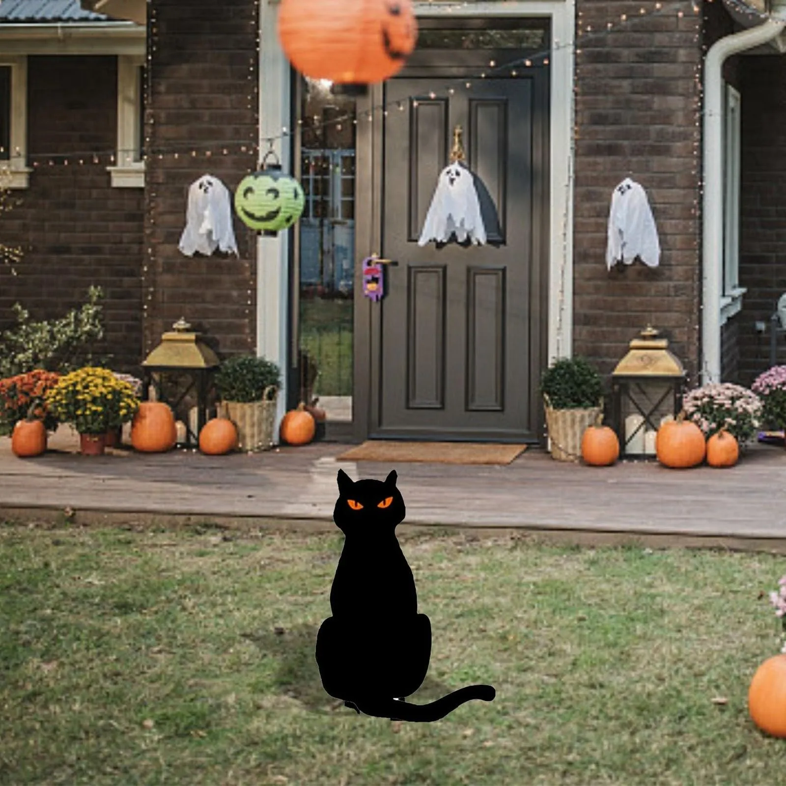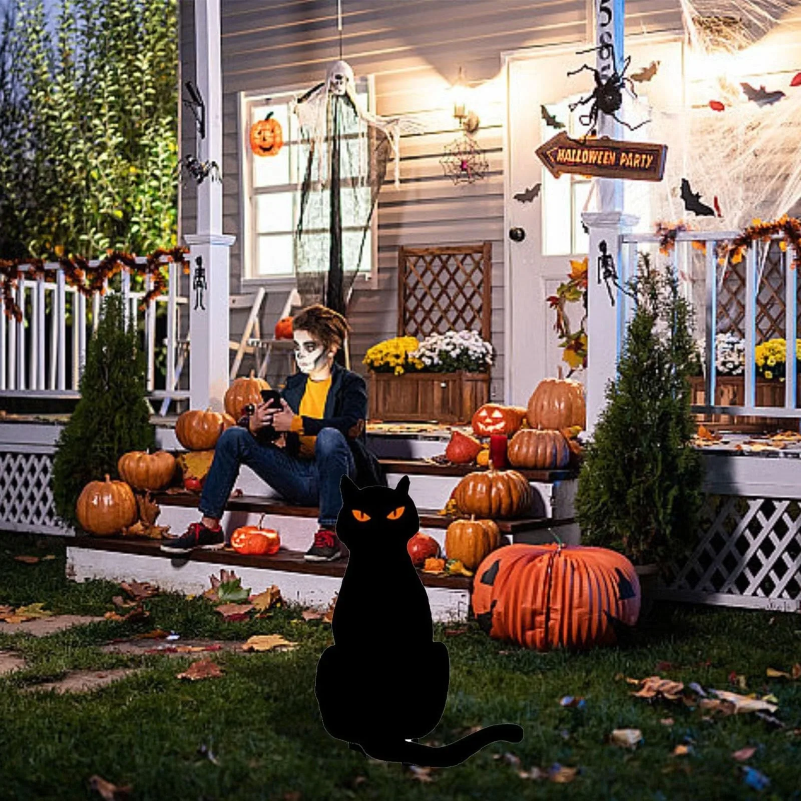 Halloween Outdoor Decoration 15 Inch Metal Scary Cat Scary Silhouette With Glow In Orange Eyes Halloween Garden Stakes Metal Yard Stakes Decor Garden Party Ornaments