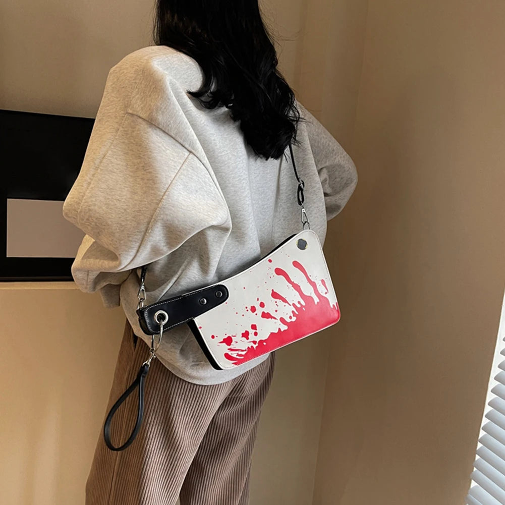 Step right up, my dearies, and feast your eyes on the Bloody Clever Bag! This isn’t just any bag, oh no! It’s a marvelous, macabre masterpiece that will have everyone screaming with delight. Crafted from the finest faux leather, this bag is drenched in a deliciously gory blood-red hue that will make your heart race and your spine tingle.
