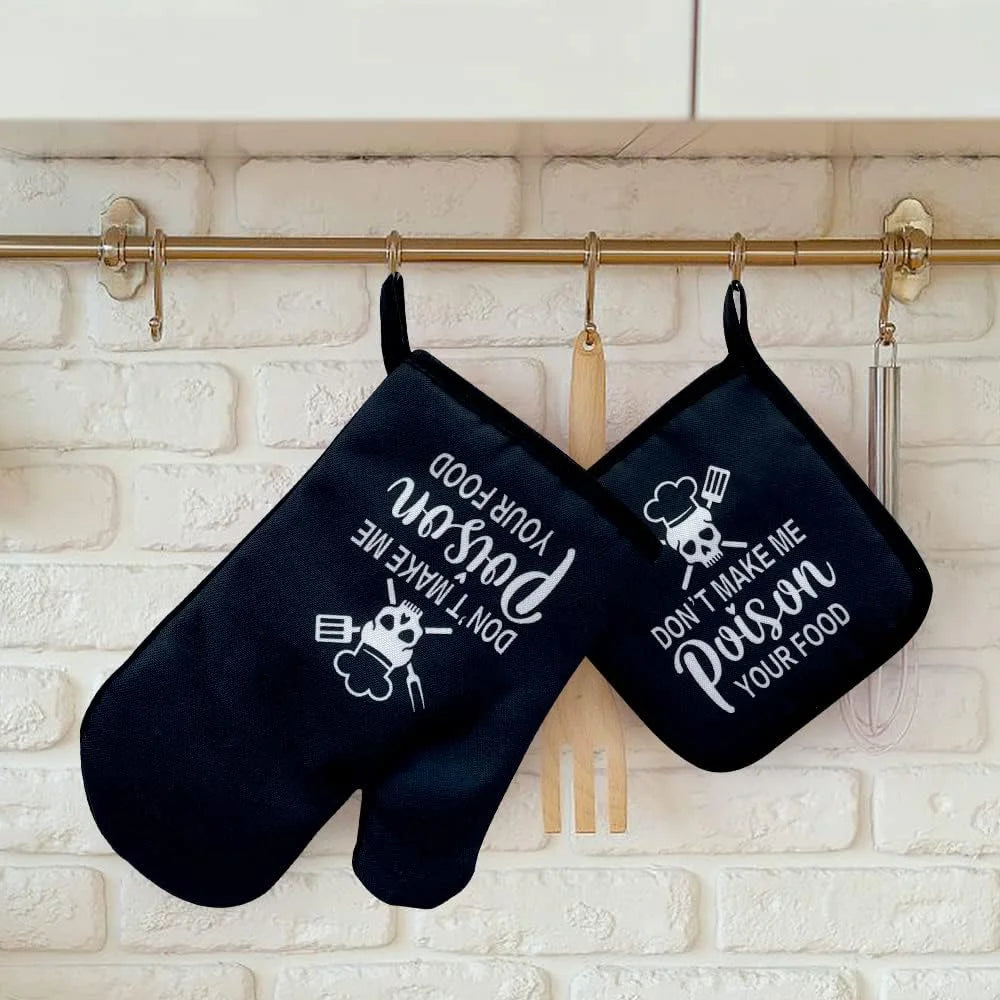 Tired of the same old boring kitchen accessories? Add a pinch of mischief to your cooking with our “Don’t Make Me Poison Your Food” Oven Mitt and Potholder! Perfect for Halloween parties, housewarmings, or just a regular Tuesday dinner, this oven mitt is sure to get a laugh (and maybe a few nervous glances).