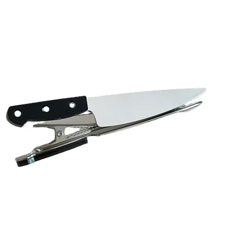 Unleash your inner maniac with the Knife Hair Clip. This isn’t just an accessory; it’s a statement of pure, unadulterated chaos. Perfect for those who walk the line between sanity and madness, this hair clip is shaped like a gleaming dagger, ready to slice through the mundane. Whether you’re plotting your next sinister scheme or just want to add a touch of danger to your look, this clip is your ultimate companion. Dare to wear it, and let the world know you’re not to be trifled with.