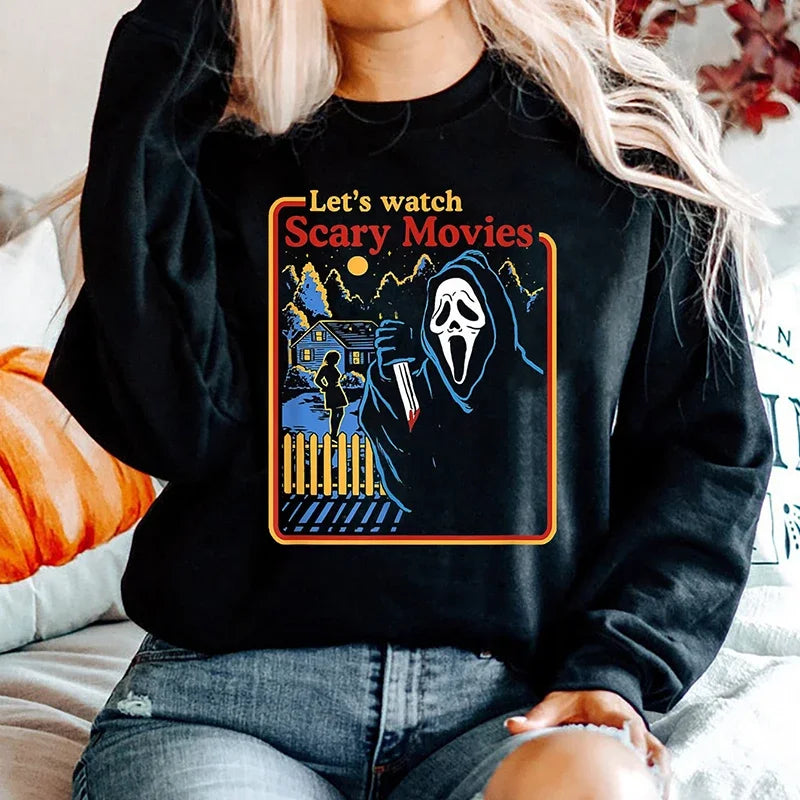 Prepare to embrace the eerie ambiance of Halloween with our Let’s Watch Scary Movies Crewneck. This hauntingly comfortable sweatshirt is perfect for those who revel in the thrill of the macabre. Crafted from soft, high-quality fabric, it promises to keep you warm as you delve into the darkest corners of horror cinema. The bold, blood-red lettering on the front serves as a chilling invitation to join the ranks of the fearless. Whether you’re hosting a horror movie marathon or wandering through a haunted house, this crewneck will ensure you do it in spine-tingling style. Dare to wear it and let the nightmares begin!
