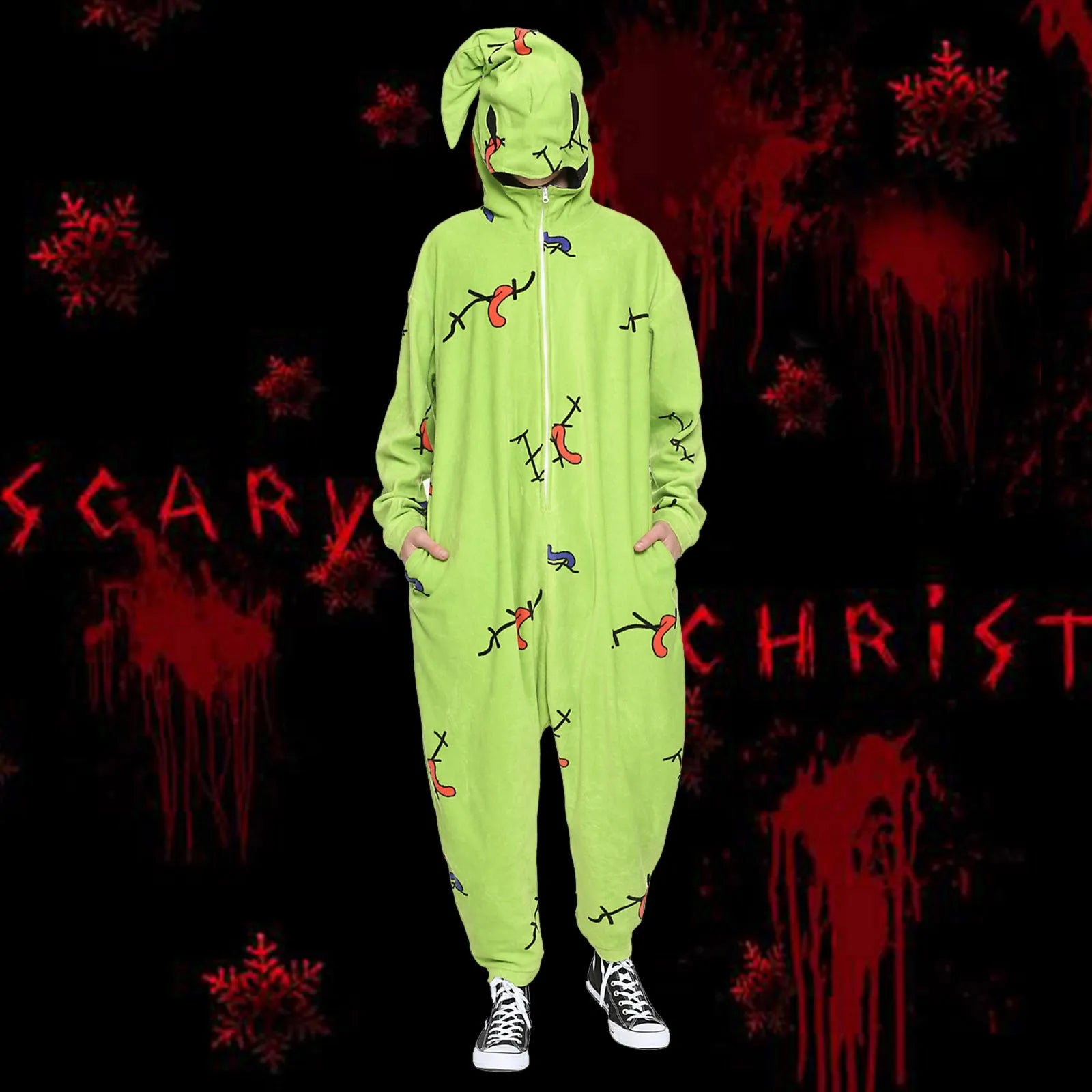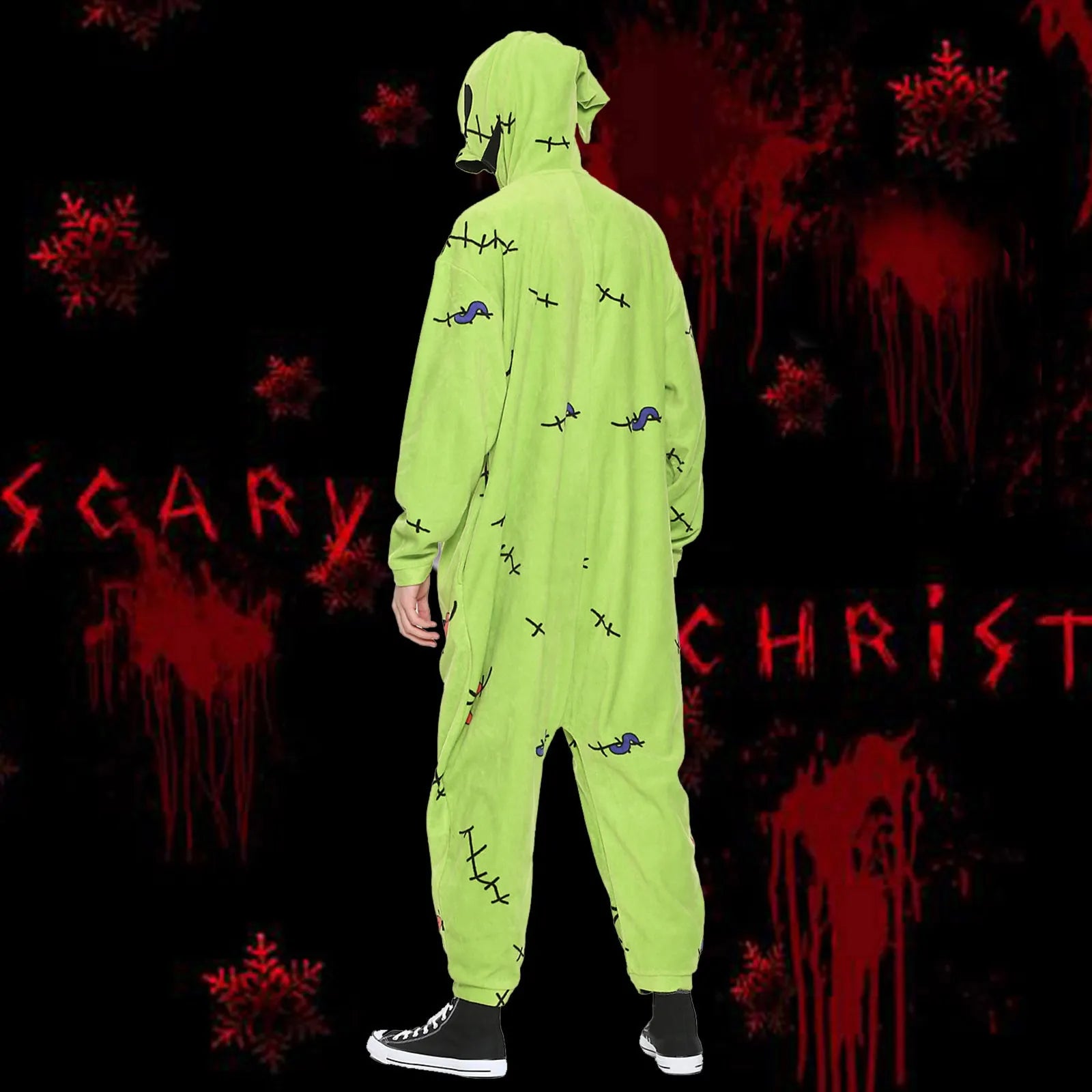 Step into the shadows with the Oogie Boogie Onesie, the ultimate attire for those who dare to embrace the darkness! Crafted from the finest materials, this onesie is perfect for haunting Halloween nights or cozying up in your lair. With its eerie black hue and sinister design, you’ll be the embodiment of the Boogeyman himself.