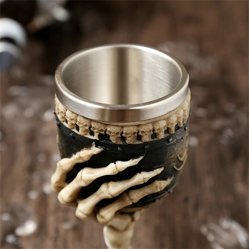 Hail, mighty warrior! Feast like the Norse gods with the Skeleton Viking Mug. This fearsome tankard, adorned with the skulls of fallen foes, is forged from the finest resin and stainless steel, ensuring it withstands the mightiest of battles and the rowdiest of feasts.