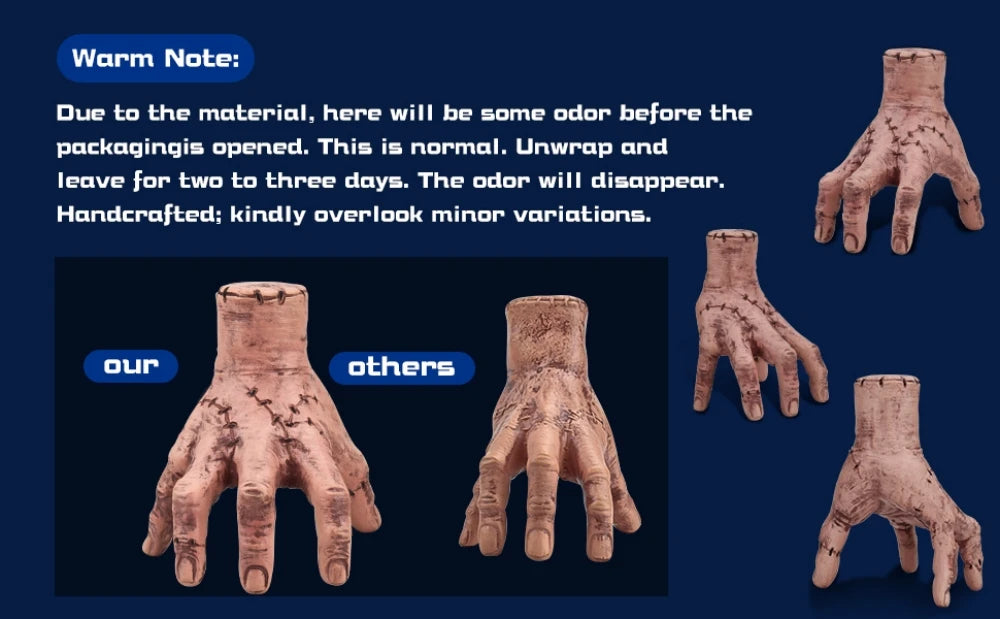 Whether you’re attending a ghoulish gathering or simply want to embrace your inner Addams, this Thing Shoulder Accessory is the perfect addition to your Eerie Essentials collection. Let Thing lend you a hand in creating an unforgettable Halloween experience.